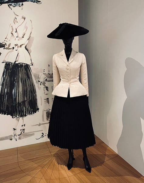 Light fell across mannequins, sketches, treasures and artifacts, revealing the Maison’s history visionary design, and legacy at every turn. From the sculpted lines of the “Bar” suit and “Tulip” dress to the delicate seasonal gowns, each piece indicated scrupulous craftsmanship to the devotion of countless ateliers.
