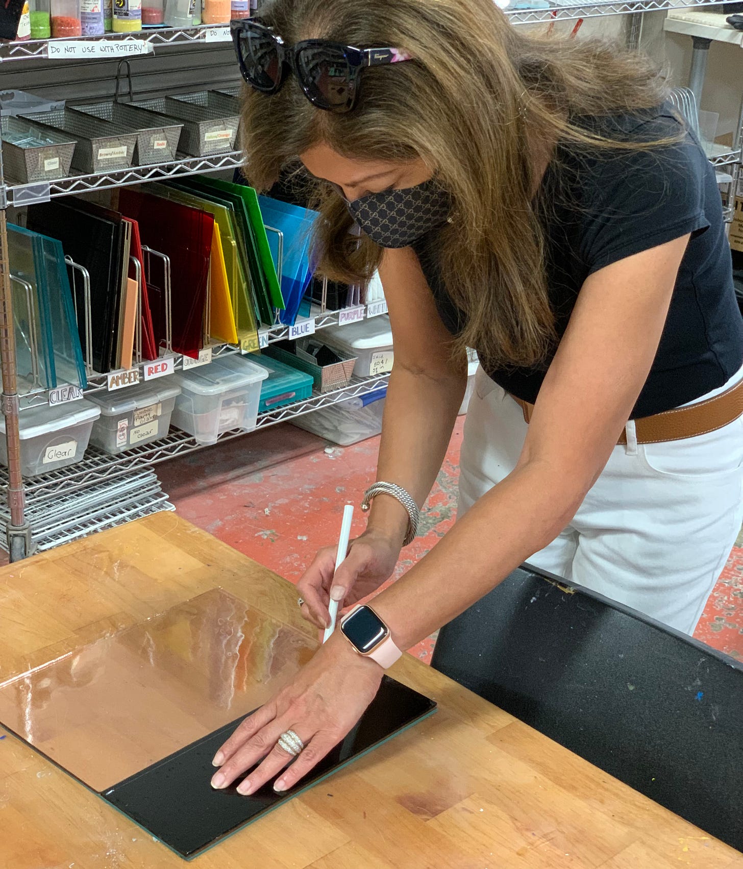 I designed and fabricated my first plate at my daughter Sheena’s Laurel Street Art Studio, in San Carlos. My friends were kind enough to meet me at the art studio or at Peet’s Coffee next door or at Delize, just so I could be in walking distance and close to my family. One of my friends even brought her baby to visit with me - aww!
