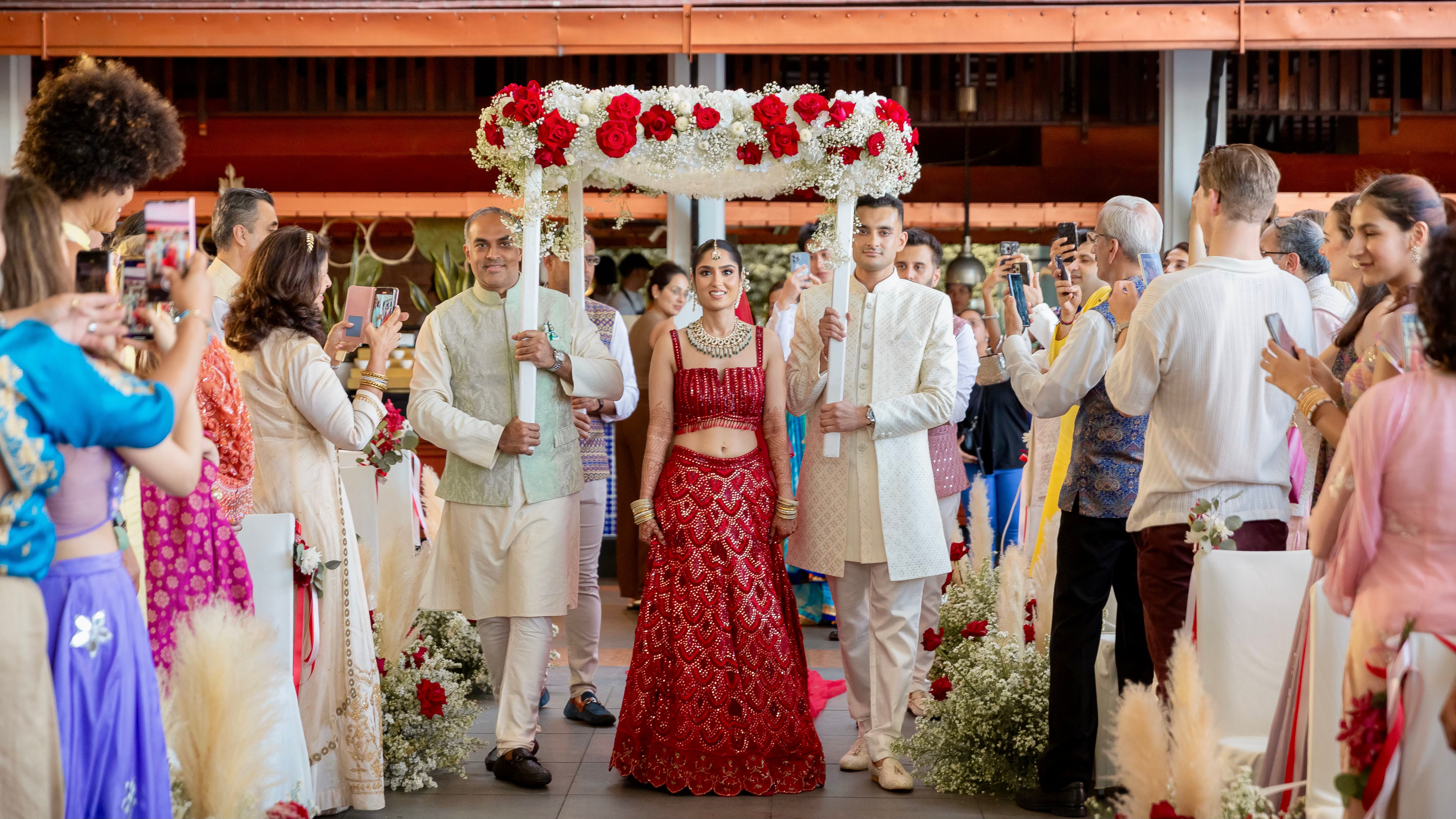 Shona and Jai’s wedding was a vivacious symphony celebrating their narrative of love, woven with threads of tradition. Their nuptial festivities were a dazzling mosaic, blending the opulent traditions of Indian heritage with a modern, cosmopolitan flair.